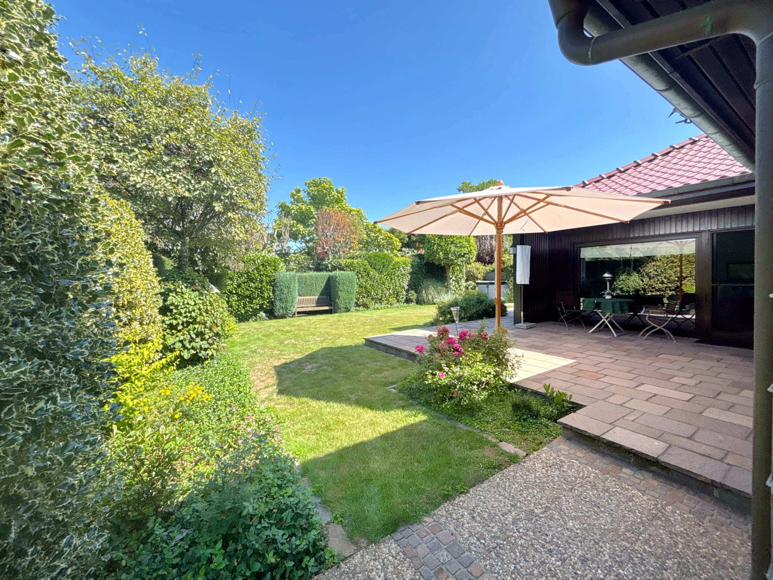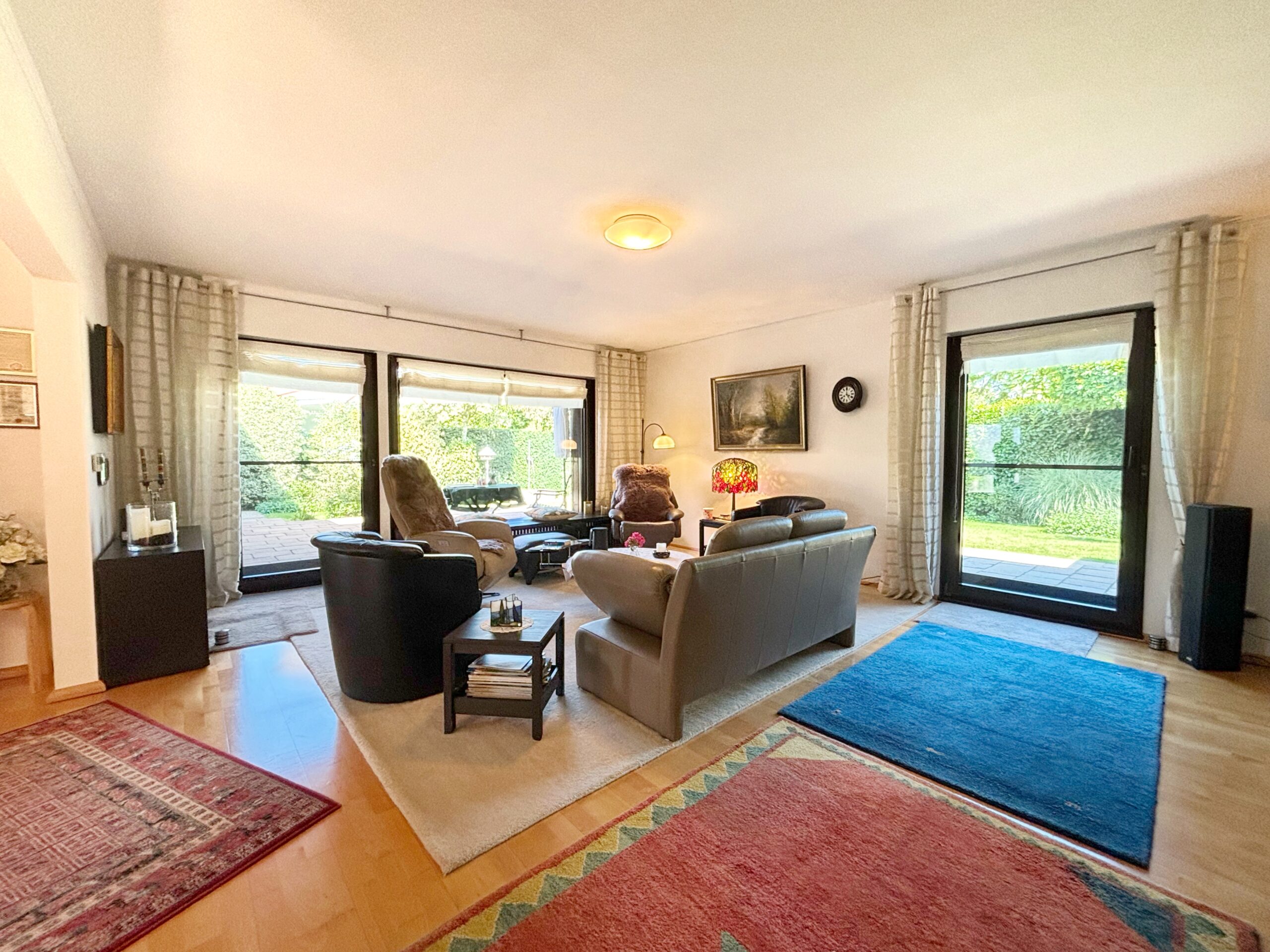 Dieser gepflegte Bungalow überzeugt mit ca. 131 m² Wohnfläche auf einem großzügigen Grundstück in zentraler, dennoch ruhiger Lage von Erkelenz. Die Immobilie vereint Stadtnähe mit Privatsphäre und ist somit ideal für Paare, Familien oder Senioren, die komfortables Wohnen auf einer Ebene schätzen. Der offen gestaltete Wohn- und Essbereich mit edlem Parkettboden schafft eine einladende Atmosphäre und bildet das Herzstück des Hauses. Große, bodentiefe Fenster sorgen für viel Licht und ermöglichen den direkten Zugang zur Terrasse sowie in den liebevoll angelegten, nicht einsehbaren Garten – ein perfekter Ort zum Entspannen und Genießen. Zwei freundlich gestaltete Schlafzimmer, ein stilvolles Tageslichtbad, ein separates Gäste-WC und ein flexibel nutzbares Büro ergänzen das durchdachte Wohnkonzept. Abgerundet wird das Angebot durch einen großzügigen Keller mit Sauna und weiteren, vielfältigen Nutzungsmöglichkeiten sowie eine Garage. Für nur 499.000 € inklusive hochwertiger Einbauküche – gleich anrufen und einen Besichtigungstermin vereinbaren!