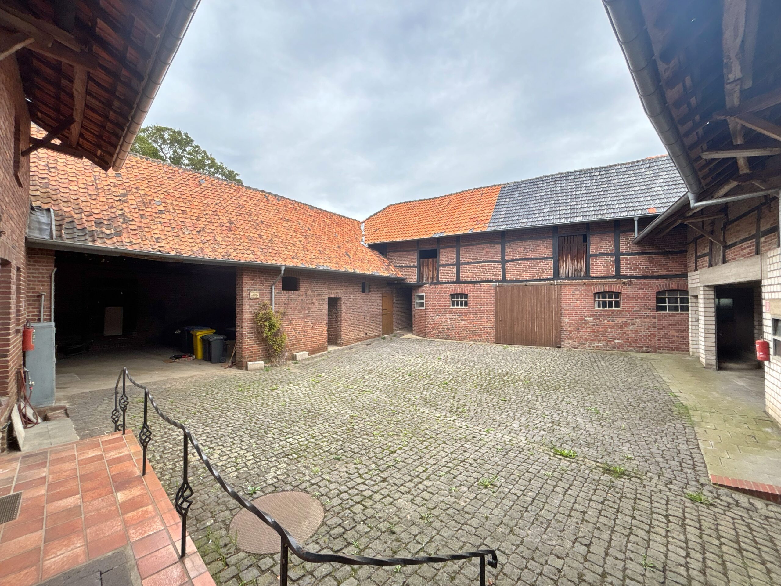 Diese charmante Hofanlage aus dem Jahr 1661 wartet darauf, von Ihnen mit neuem Leben erfüllt zu werden. Auf ca. 179 m² Wohnfläche und einem traumhaften Grundstück von ca. 8.298 m² eröffnen sich Ihnen vielfältige Möglichkeiten zur individuellen Gestaltung und Verwirklichung Ihrer Wohnträume. Das Haupthaus erstreckt sich über zwei Etagen und beeindruckt bereits im Erdgeschoss mit einer großzügigen Diele. Die geräumige Küche mit angrenzendem, großzügigem Vorratsraum lädt zum gemeinsamen Kochen und Verweilen ein. Das Wohnzimmer ist direkt vom Esszimmer aus zugänglich und bietet viel Platz für gemütliche Stunden. Ergänzt wird das Raumangebot durch ein praktisches Gäste-WC sowie ein flexibel nutzbares Zimmer, das sich ideal als Büro oder Gästezimmer eignet. Zudem ist ein Hauswirtschaftsraum und eine Werkstatt vom Innenhof zugänglich. Im Obergeschoss erwarten Sie vier helle und großzügig geschnittene Schlafzimmer sowie ein Tageslichtbad mit Badewanne und Dusche. Angrenzend an das Wohnhaus befinden sich zusätzliche Stallungen und Hallen, die teilweise vermietet sind und somit weiteres Potenzial bieten. Weitere Nutzflächen sind auf den Dachböden des Vierkanthofes vorhanden. Darüber hinaus ist die Immobilie vollständig unterkellert, der großzügige Gewölbekeller bietet angenehme Stehhöhe und vielfältige Nutzungsmöglichkeiten. Für 724.000 € inklusive zusätzlichem Baugrundstück gleich anrufen und einen Besichtigungstermin vereinbaren!