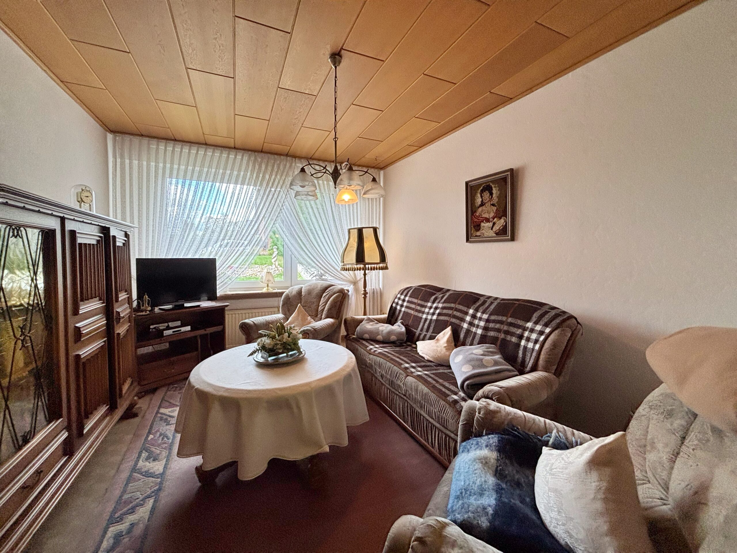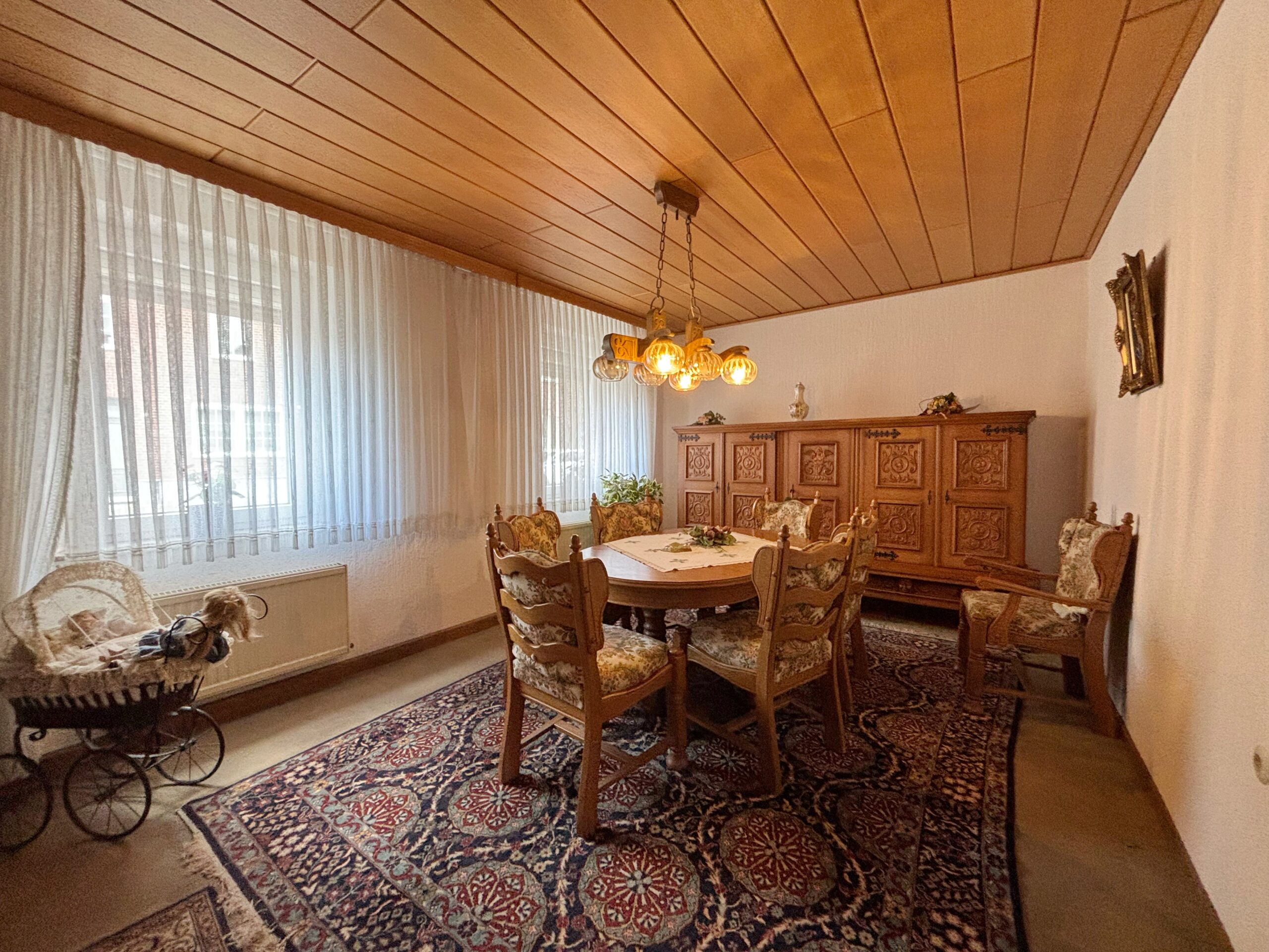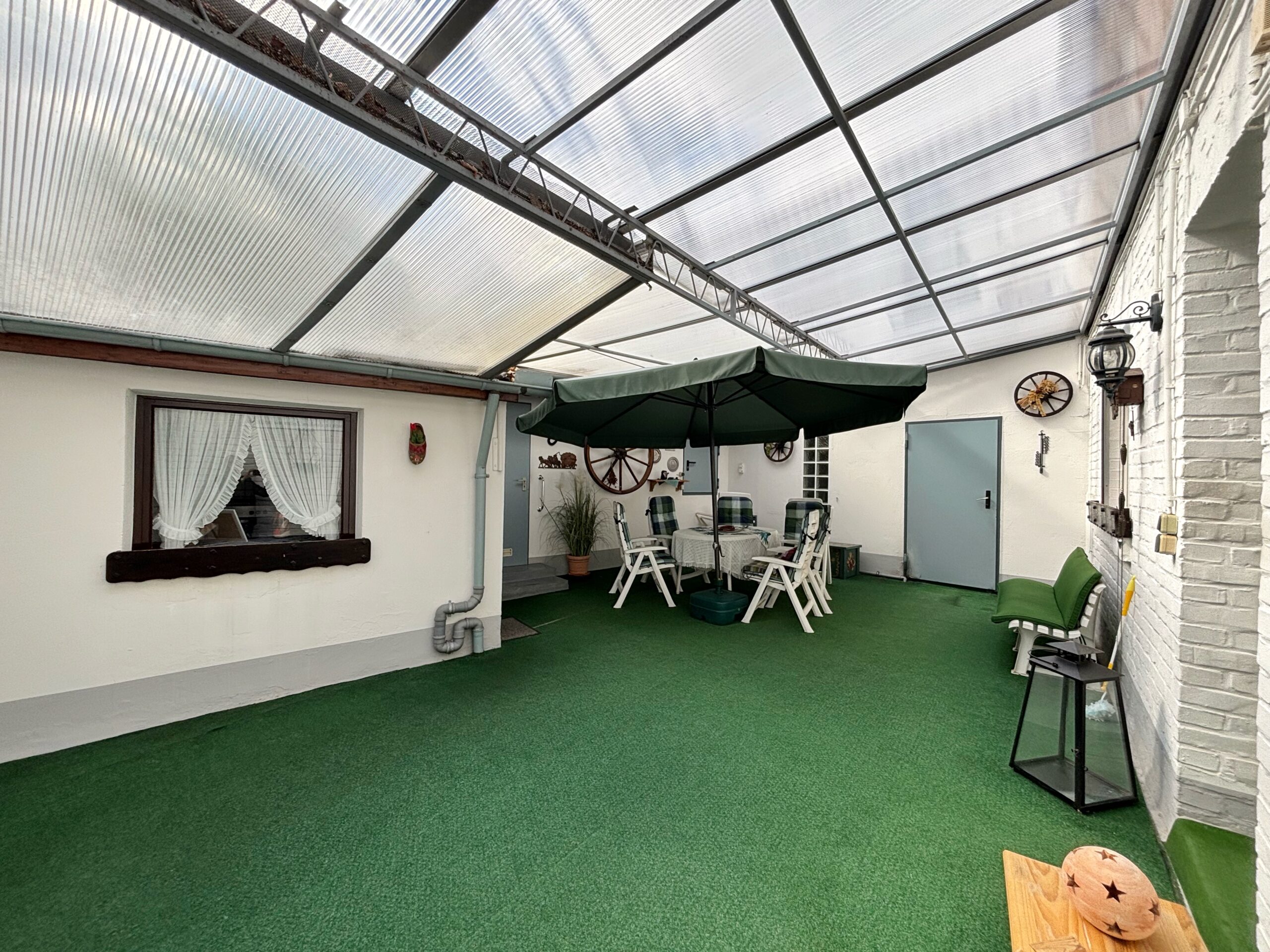 Dieses Einfamilienhaus umgebaut im Jahre 1952 überzeugt mit einer Wohnfläche von ca. 140 m² und einem großzügigen Grundstück von ca. 416 m². Im Erdgeschoss befinden sich ein gemütliches Wohnzimmer, ein großzügiges Esszimmer, eine separate Küche sowie ein Gäste-WC, ein Hauswirtschaftsraum und praktische Abstellräume. Ein besonderes Highlight ist der helle Wintergarten, der als zentraler Treffpunkt für die ganze Familie dient – ein Ort zum Verweilen und Zusammensein, zu jeder Jahreszeit. Hierdurch gelangen Sie zudem in den pflegeleicht angelegten Garten mit Einfahrt zur Garage. Das Obergeschoss bietet ausreichend Platz, aufgeteilt in zwei Schlafzimmer, ein Büro sowie ein Badezimmer. Ideal für Familien, die ein Zuhause mit Entwicklungsmöglichkeiten suchen – in ruhiger, aber dennoch zentraler Lage. Für nur € 169.900,- inklusive Garage - gleich anrufen und einen Besichtigungstermin vereinbaren!