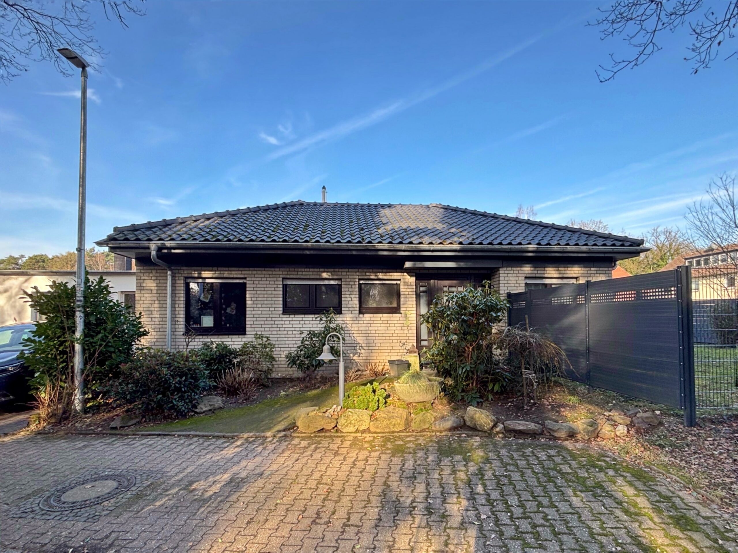 In ruhiger Sackgassenlage erwartet Sie dieser charmante Bungalow mit vier Zimmern in solider Massivbauweise. Auf ca. 100 m² Wohnfläche und einem ca. 532 m² großen Grundstück genießen Sie ein durchdachtes Raumkonzept für komfortables Wohnen. Der Wohnbereich mit Kamin bildet das Herzstück des Hauses und ermöglicht den direkten Zugang zur überdachten Terrasse sowie in den geschützten Garten. Die separate Küche lädt zum gemeinsamen Kochen ein, während zwei großzügige Schlafzimmer als ruhige Rückzugsorte dienen. Das Büro mit Blick in den Garten eignet sich ideal für das Homeoffice oder kreative Nutzung. Ein helles Tageslichtbad mit Badewanne sowie ein separates Gäste-WC runden das Erdgeschoss ab. Im Kellergeschoss stehen ein großer Hobbyraum, ein Duschbad sowie weitere Kellerräume zur individuellen Nutzung zur Verfügung. Ihr Fahrzeug parken Sie bequem direkt vor dem Haus oder geschützt in der nahegelegenen, separaten Garage. Für nur 369.000,- € inklusive Einbauküche - gleich anrufen und einen Besichtigungstermin vereinbaren!