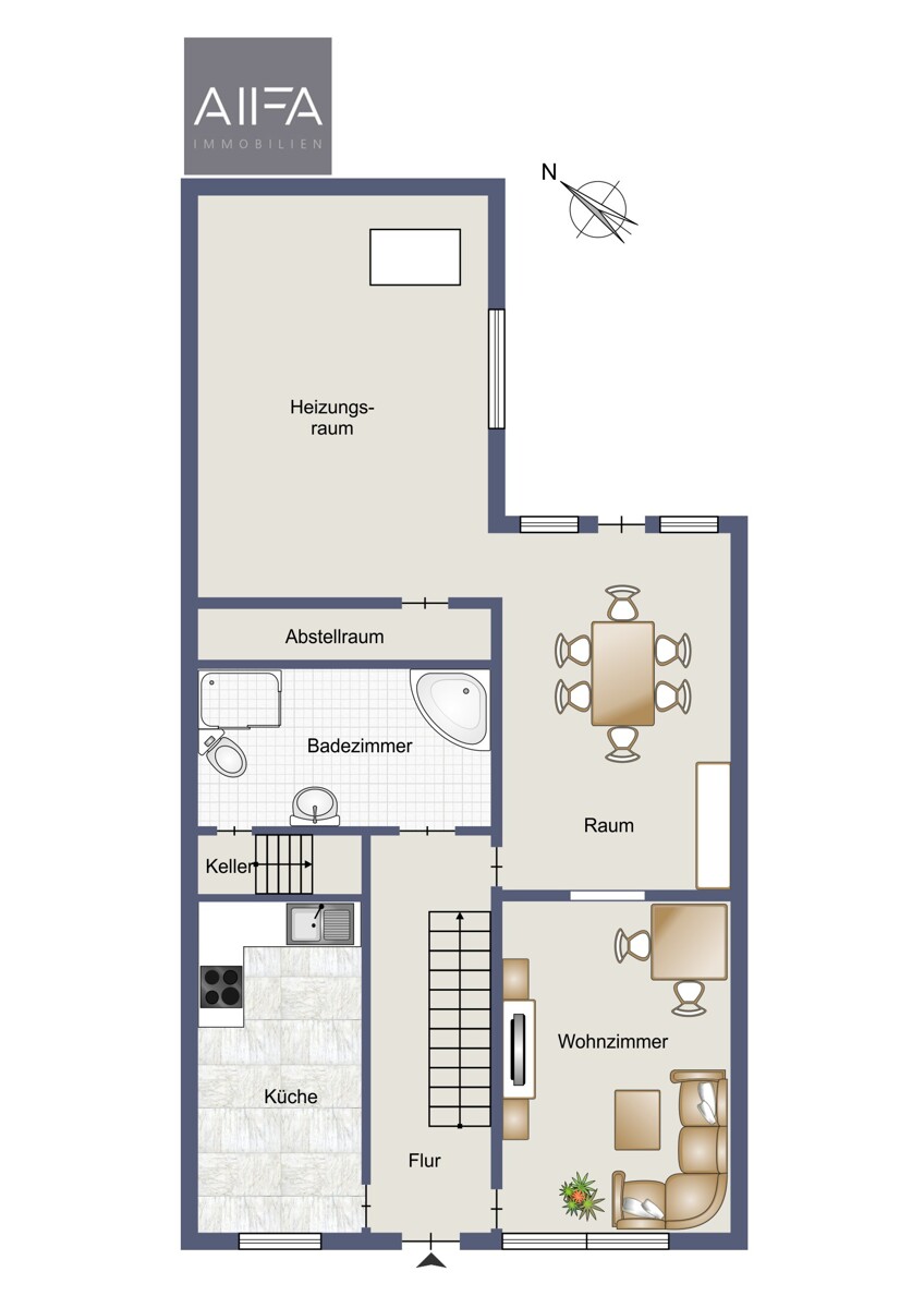 Dieses Reihenendhaus wurde ca. 1950 auf einem Grundstück von 176 m² erbaut und verfügt über eine Wohnfläche von rund 92 m².